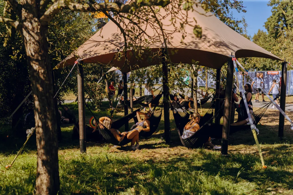 Willkommen in der Chill Out Area – deinem grünen Rückzugsort mitten auf dem Festivalgelände!
